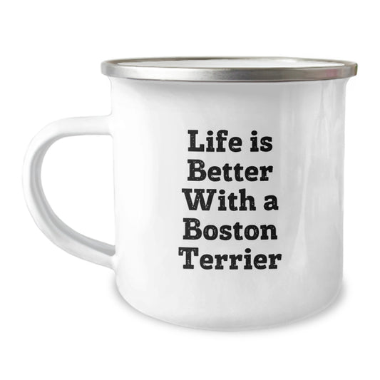 Funny Boston Terrier Dog Gifts for Men, Women, Friends - Life Is Better With A Boston Terrier, Boston Terrier Dog Lover Camping Mug for Graduation, Unique Gifts from Family