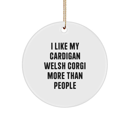 Funny Cardigan Welsh Corgi Dog Gifts - I Like My Cardigan Welsh Corgi More Than People, Circle Ornament for Friends and Family, Christmas Unique Gifts from Men, Women, Family, and Coworkers