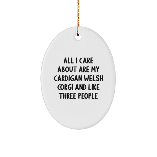 Funny Cardigan Welsh Corgi Dog Lover Gifts from Family, Friends, or Coworkers - 'All I Care About Are My Cardigan Welsh Corgi And Like Three People' Oval Ornament for Christmas