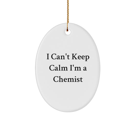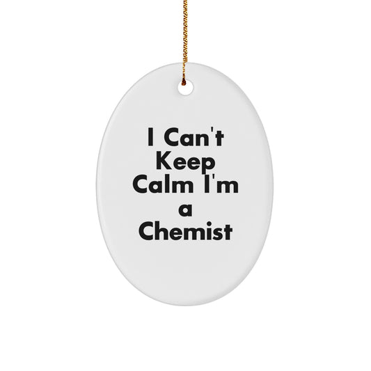 Funny Chemist Oval Ornament Gift for Friends from Men, Unique Christmas Unique Gifts for Him, Her, Family, or Coworkers with 'I Can't Keep Calm I'm A Chemist' Quote