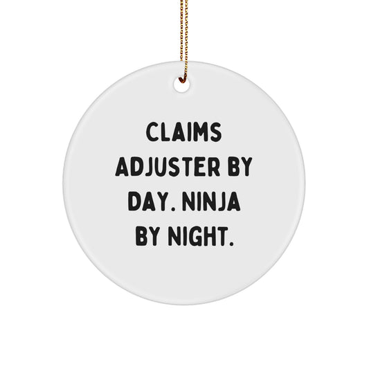 Claims Adjuster By Day. Ninja By Night. Funny Circle Ornament Gifts from Friends for Christmas