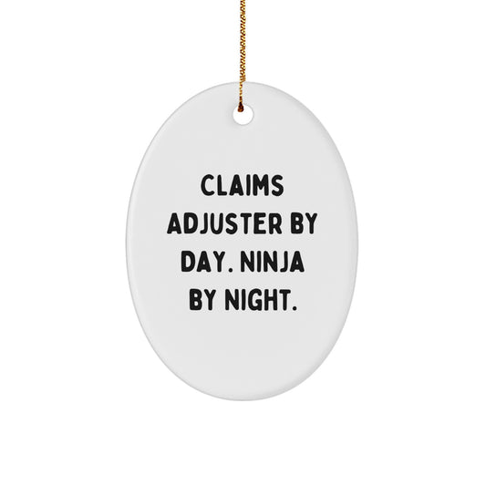 Claims Adjuster Oval Ornament, 'Claims Adjuster By Day. Ninja By Night.' Funny Gift for Claims Adjuster, Gifts from Friends, Family, or Coworkers, Christmas Unique Gifts