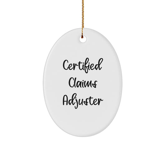 Funny Claims Adjuster Gifts from Friends to Men, Oval Ornament for Christmas, Quote 'Certified Claims Adjuster' on White MDF with High-Gloss Finish