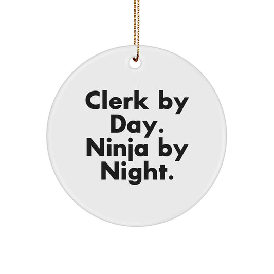 Clerk Gifts from Men - 'Clerk By Day. Ninja By Night.' Circle Ornament for Clerk, Christmas Unique Gifts