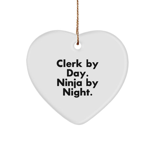 Clerk Gifts, Clerk By Day Ninja By Night Heart Ornament, Funny Christmas Unique Gifts for Men Women Friends Coworkers Family