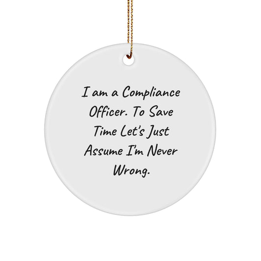 Compliance Officer Gifts from Friends - I Am A Compliance Officer. To Save Time Let's Just Assume I'm Never Wrong. Circle Ornament for Christmas