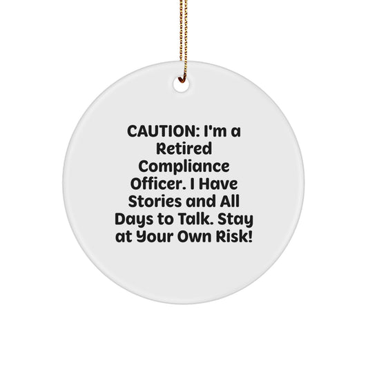 Compliance Officer Funny Quote Oval Ornament Gifts from Friends for Christmas Decorations - Caution I'm A Retired Compliance Officer I Have Stories