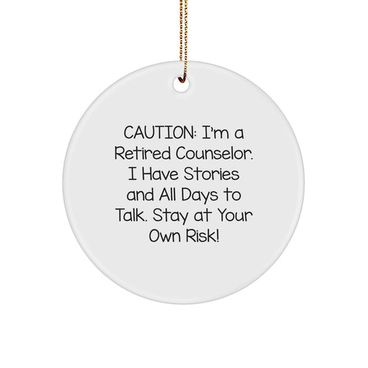 Funny Counselor Christmas Unique Gifts for Counselor Friends and Family - Caution: I'm A Retired Counselor. I Have Stories And All Days To Talk. Stay At Your Own Risk! Circle Ornament