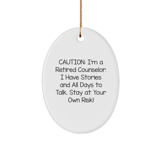 Fun Counselor Gifts from Friends - Oval Ornament Caution: I'm A Retired Counselor. I Have Stories And All Days To Talk. Stay At Your Own Risk!, Christmas Unique Gifts for Counselors