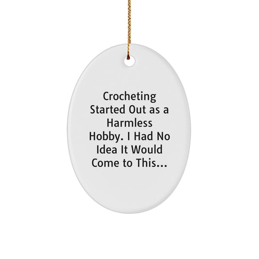 Funny Crocheting Gifts from Men to Women Friends for Christmas Oval Ornament Crocheting Started Out As A Harmless Hobby I Had No Idea It Would Come To This... Decorations