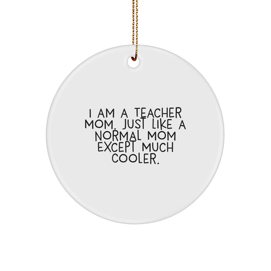 Funny Teacher Mom Gifts from Family for Teacher Christmas Unique Ornaments, 'I Am A Teacher Mom. Just Like A Normal Mom Except Much Cooler.'