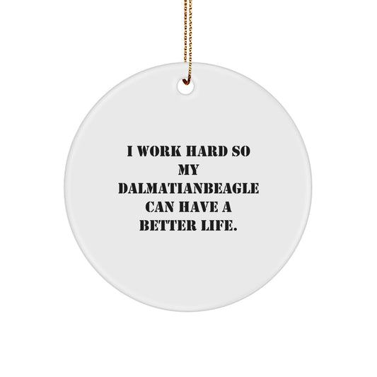 Funny Dalmatian Dog Lovers Gifts from Family for Christmas Unique Circle Ornaments, 'I Work Hard So My Dalmatian Can Have A Better Life.'