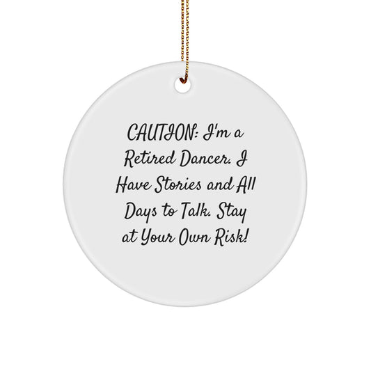 Funny Dancer Gifts, Dancer Circle Ornament, Christmas Unique Gifts from Friends to Dancer, Caution: I'm A Retired Dancer.