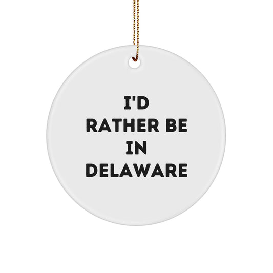 Delaware Enthusiasts' Delight, 'I'd Rather Be In Delaware' Circle Ornament, White, Gifts from Friends for Delaware Lovers, Unique Christmas Unique Gifts