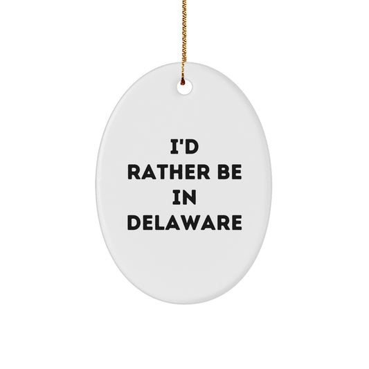 Delaware Oval Ornament, I'd Rather Be In Delaware, Funny Quote Gift for Friends, Family, Coworkers from Delaware, 3.25" Tall, White, MDF, Sublimation, Christmas Decoration