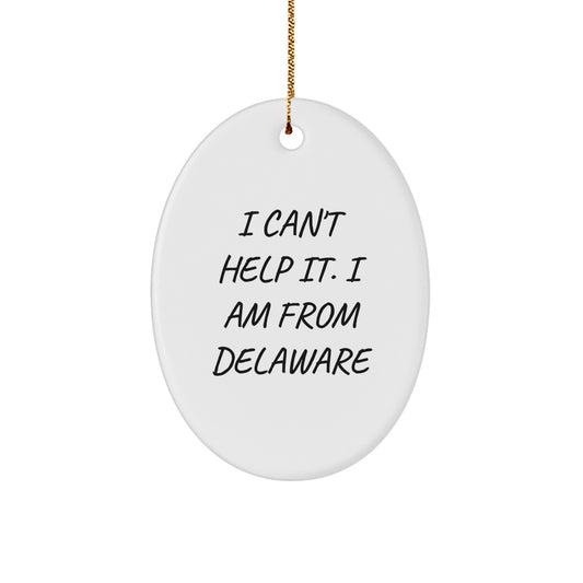 Delaware Gifts - I Can't Help It. I Am From Delaware - Oval Ornament, White, Christmas Unique Gifts from Family to Delaware Friends