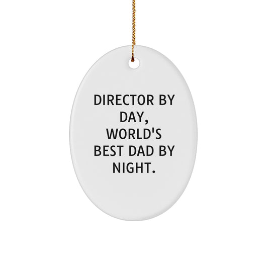 Funny Director Gifts By Day, World's Best Dad By Night Oval Ornament for Christmas