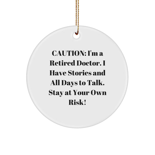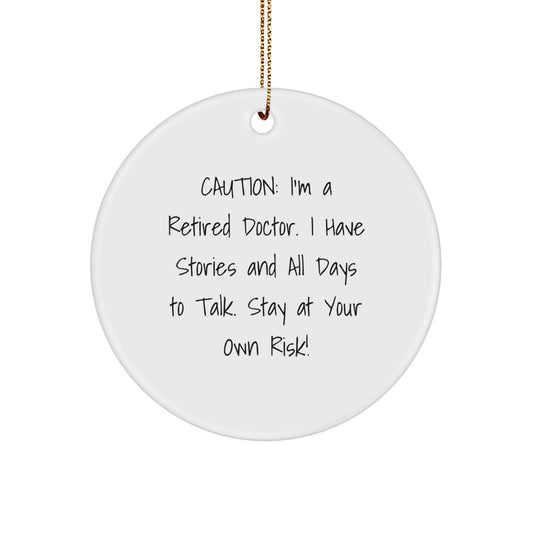 Funny Doctor Gifts from Men to Friends and Family, Christmas Unique Circle Ornament for Doctor's Office Decor, Caution: Retired Doctor's Story
