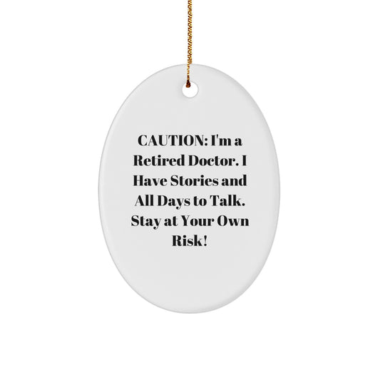Funny Doctor Oval Ornament, Gifts from Men for Doctors, Unique Christmas Unique Gifts for Him, Caution: I'm A Retired Doctor. I Have Stories And All Days To Talk. Stay At Your Own Risk!