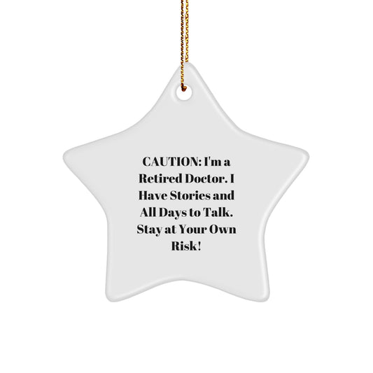 Funny Oncologist Gifts from Men to Friends - Caution: I'm A Retired Oncologist. I Have Stories And All Days To Talk. Stay At Your Own Risk! Star Ornament for Christmas