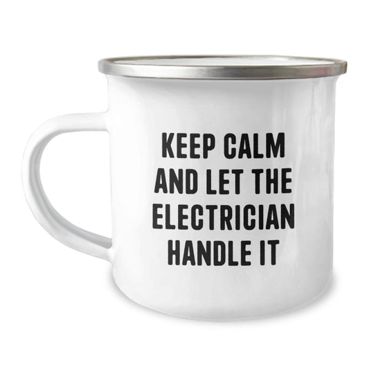 Funny Electrician Gifts from Men for Christmas Unique Presents - Keep Calm And Let The Electrician Handle It Camping Mug