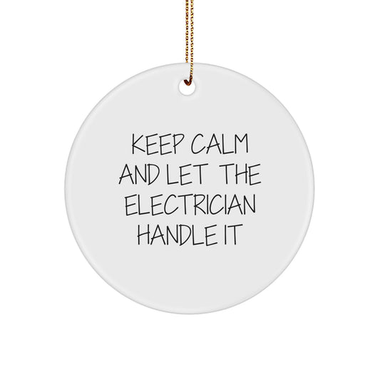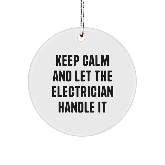 Funny Electrician Gifts for Men Christmas Circle Ornament Gifts from Friends, 'Keep Calm And Let The Electrician Handle It' Circle Ornament, Unique Electrician Christmas Decor