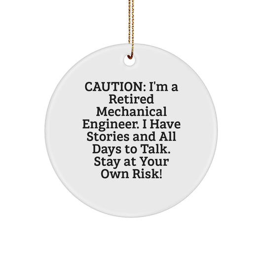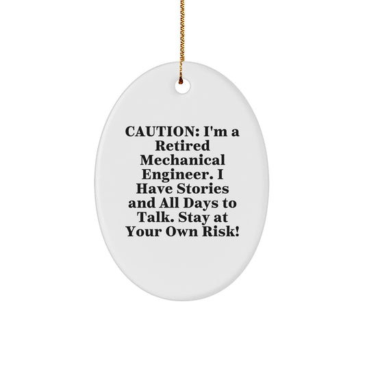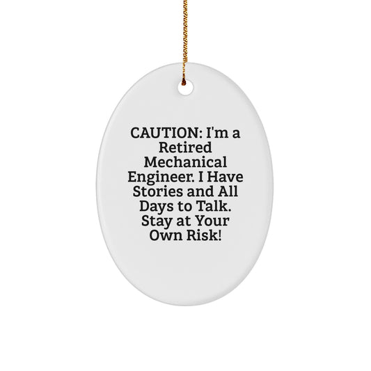 Mechanical Engineer Gifts from Men Christmas Unique Oval Ornaments - Funny Quote - Caution I'm A Retired Mechanical Engineer I Have Stories And All Days To Talk Stay At Your Own Risk!