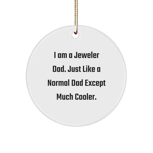 Funny Jeweler Gifts from Dad, Unique Jeweler Father's Circle Ornament, Christmas Unique Gifts for Jeweler Dad, 'I Am A Jeweler Dad. Just Like A Normal Dad Except Much Cooler.'