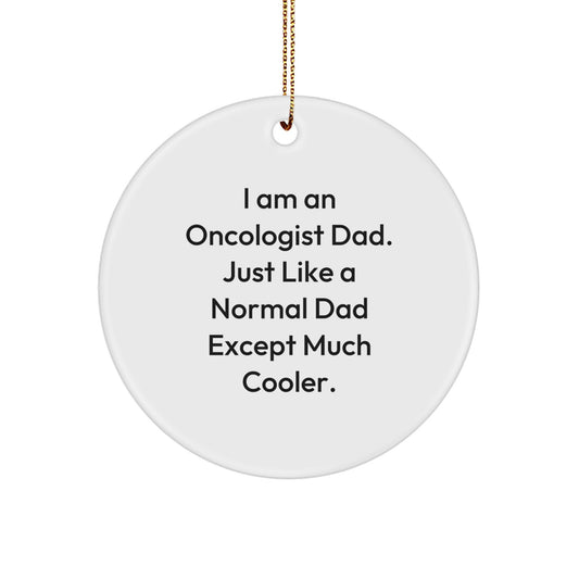Funny Oncologist Gifts for Christmas - Unique Circle Ornament from Dad, 'I Am An Oncologist Dad. Just Like A Normal Dad Except Much Cooler.'