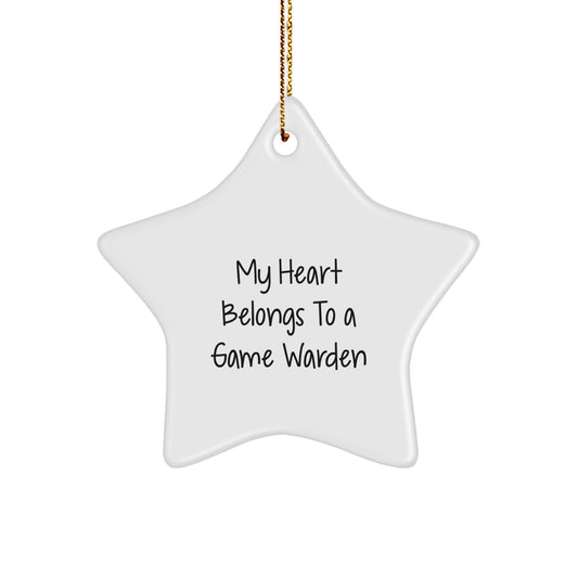 Game Warden Star Ornament, 'My Heart Belongs To A Game Warden' Christmas Unique Gift, Gifts from Family to Friends, Unique Star Ornament for Game Warden Lovers, Christmas Unique Gifts for Men