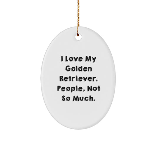 Golden Retriever Dog Lover's Funny Oval Ornament Gifts from Family to Friends, 'I Love My Golden Retriever. People, Not So Much.' for Christmas