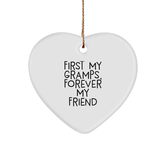 Gramps Gifts from Friends, Heart Ornament with Funny Quote, Perfect Christmas Unique Presents for Men, First My Gramps, Forever My Friend