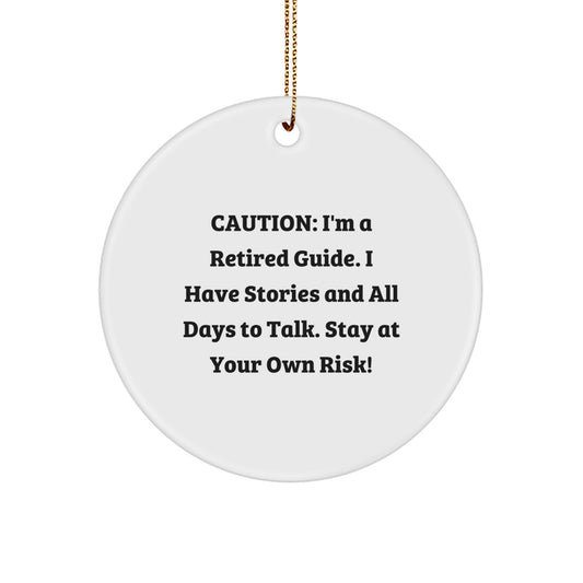 Funny Guide Gifts from Friends and Family, Christmas Unique Circle Ornament, Caution: I'm A Retired Guide. I Have Stories And All Days To Talk. Stay At Your Own Risk!