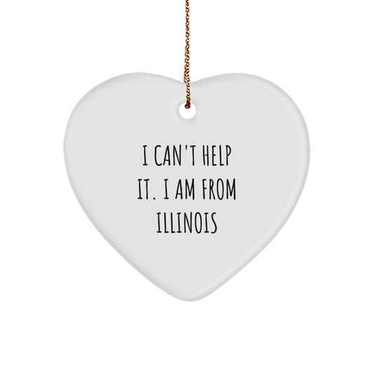 I Can't Help It, Gifts from Illinois! White Heart Ornament for Illinois Lovers, Friends, and Family - Christmas Unique Gifts