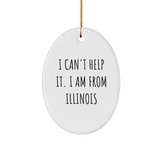 Illinois Memories Oval Ornament, I Can't Help It, Funny Quote Gifts from Friends for Illinois Lovers, Christmas Unique Gifts