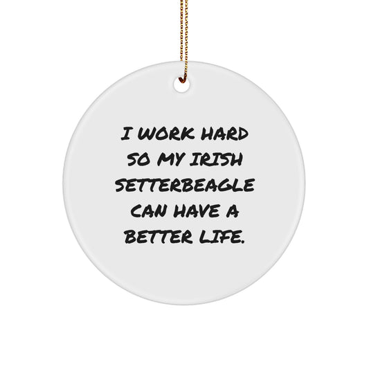 Irish Setter Dog Lover Gifts from Family, Christmas Unique Oval Ornament with 'I Work Hard So My Irish Setter Can Have A Better Life.' Quote, Gifts for Irish Setter Dog Owners