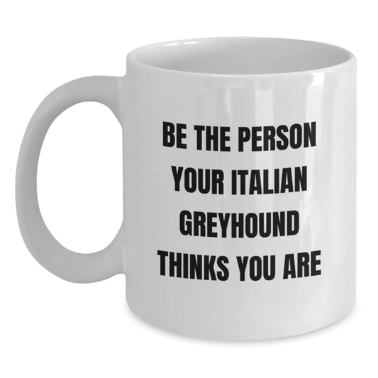Italian Greyhound Dog Lovers Gifts from Friends, Family, or Coworkers - Be The Person Your Italian Greyhound Thinks You Are White Coffee Mug, 11oz or 15oz, Microwave and Dishwasher Safe