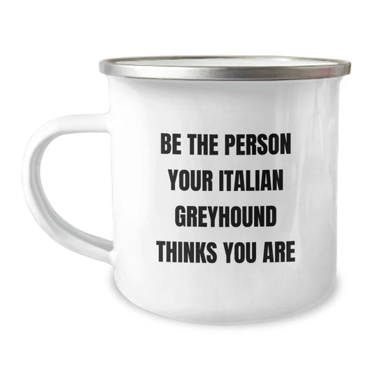Italian Greyhound Dog Lover's Funny Mug Gifts from Friends for Birthday, 'Be The Person Your Italian Greyhound Thinks You Are' Quote, Black Coffee Mug with 11oz or 15oz Capacity