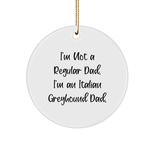 Italian Greyhound Dad Gifts for Men - Funny Circle Ornament, White, 2.75" Tall, 'I'm Not a Regular Dad, I'm an Italian Greyhound Dad' Quote, Christmas Unique Gifts from Family to Friends