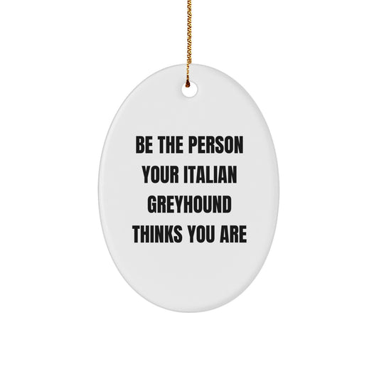Funny Italian Greyhound Dog Oval Ornament Gifts from Family, 'Be The Person Your Italian Greyhound Thinks You Are', for Italian Greyhound Dog Friends, Christmas Unique Gifts