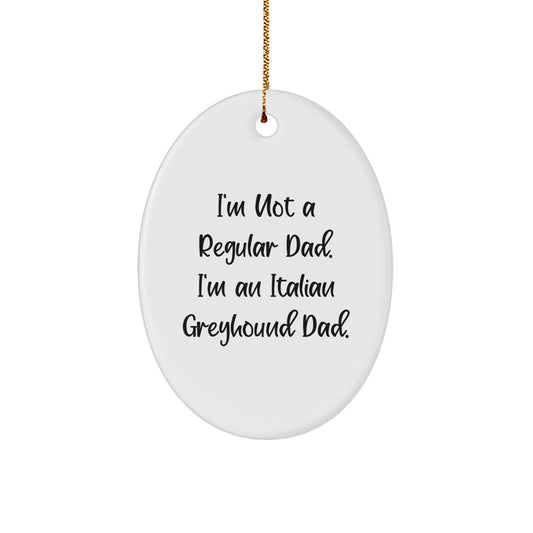 Funny Italian Greyhound Dad Gifts - Oval Ornament for Christmas, 'I'm Not A Regular Dad. I'm An Italian Greyhound Dad.' Quote, Italian Greyhound Dog Lover, Gifts from Men to Family
