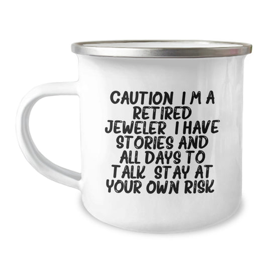 Funny Jeweler Gifts from Friends - Christmas Unique Black Coffee Mug for Men - Caution: I'm A Retired Jeweler Stay At Your Own Risk!