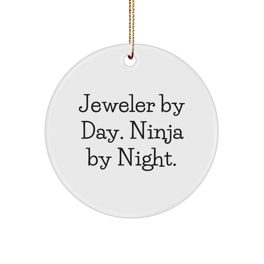 Jeweler Gifts from Friends and Family - Christmas Circle Ornament, 'Jeweler By Day. Ninja By Night.' - Unique Gifts for Jeweler