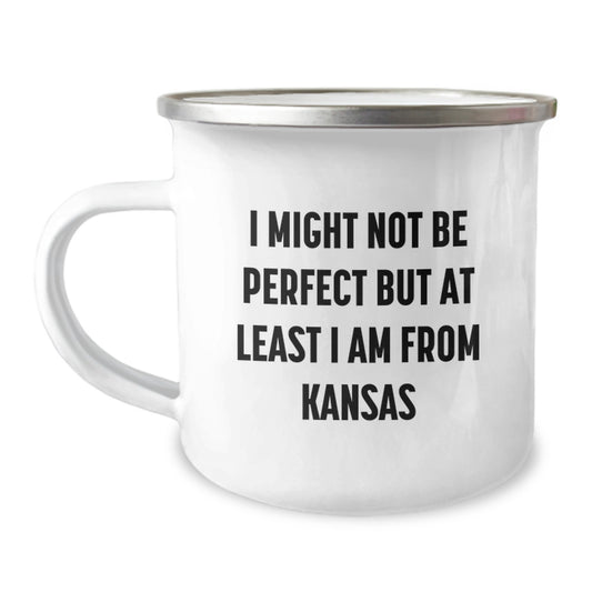 Funny Kansas Camping Mug, 'I Might Not Be Perfect But At Least I Am From Kansas' Gifts for Kansas Lovelies, Unique Graduation Gifts from Friends, Family, or Coworkers