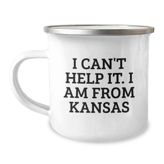 Funny Kansas Camping Mug, I Can't Help It. I Am From Kansas, Unique Gifts from Friends to Family for Graduation