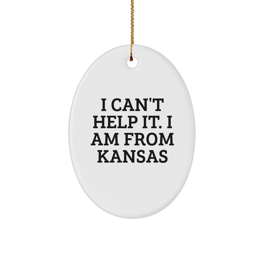 Funny Kansas Gifts from Friends - Oval Ornament with 'I Can't Help It. I Am From Kansas' Quote, Perfect for Christmas