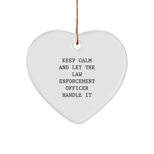 Funny Law Enforcement Officer Gifts, Keep Calm and Let the Officer Handle It Heart Ornament for Christmas Unique Gifts from Friends, Coworkers, Family