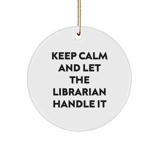 Funny Librarian Gifts from Friends for Librarian Christmas Unique Decorations - Keep Calm And Let The Librarian Handle It Circle Ornament