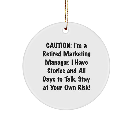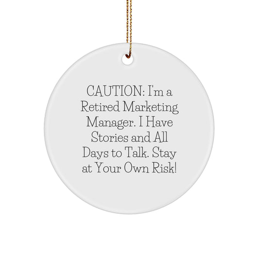 Funny Marketing Manager Circle Ornament Gifts for Friends from Men, Best Christmas Unique Decorations, Caution: I'm A Retired Marketing Manager.