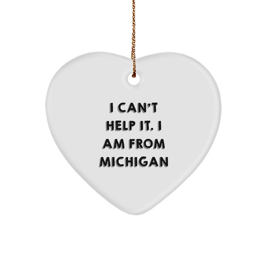 Michigan Heart Ornament I Can't Help It Gifts for Michigan Lovers Christmas Decor